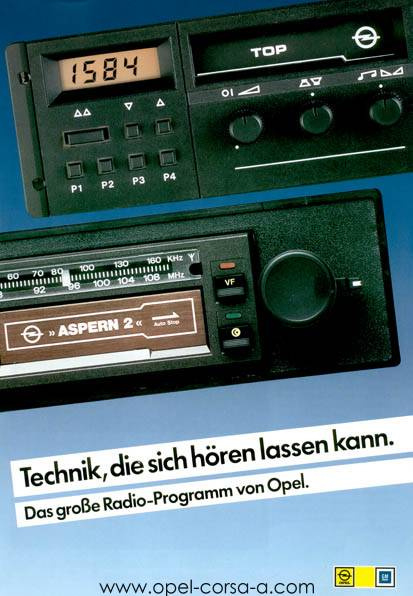 kombinierbar mit elektrischer Antenne; nicht beleuchtet; 2 Lautsprecher.